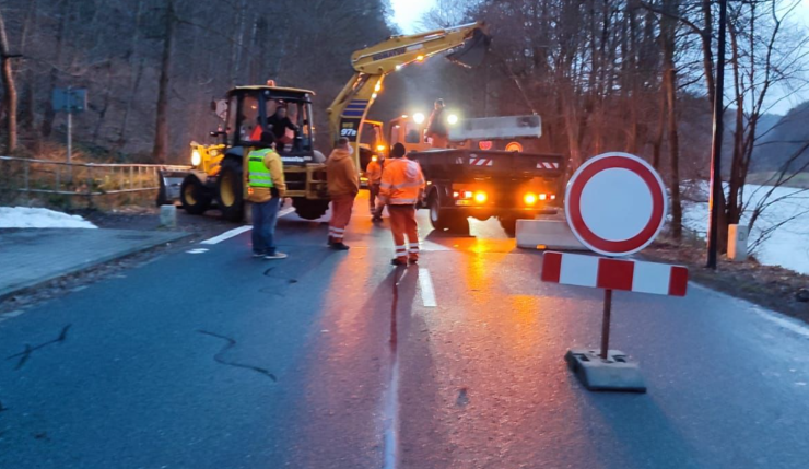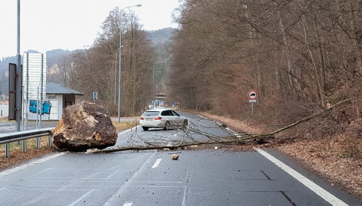 Na místě jsou i nadále policisté. O zhodnocení situace na místě bude komunikace pravděpodobně do neděle 28.1. uzavřena. SILNICE JE UZAVŘENA! Ve svahu se nachází velký balvan opřený o strom a je možné, že se uvolní.