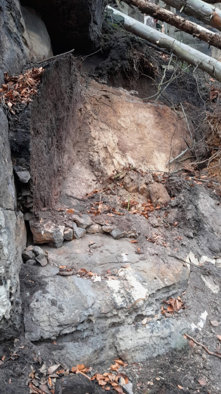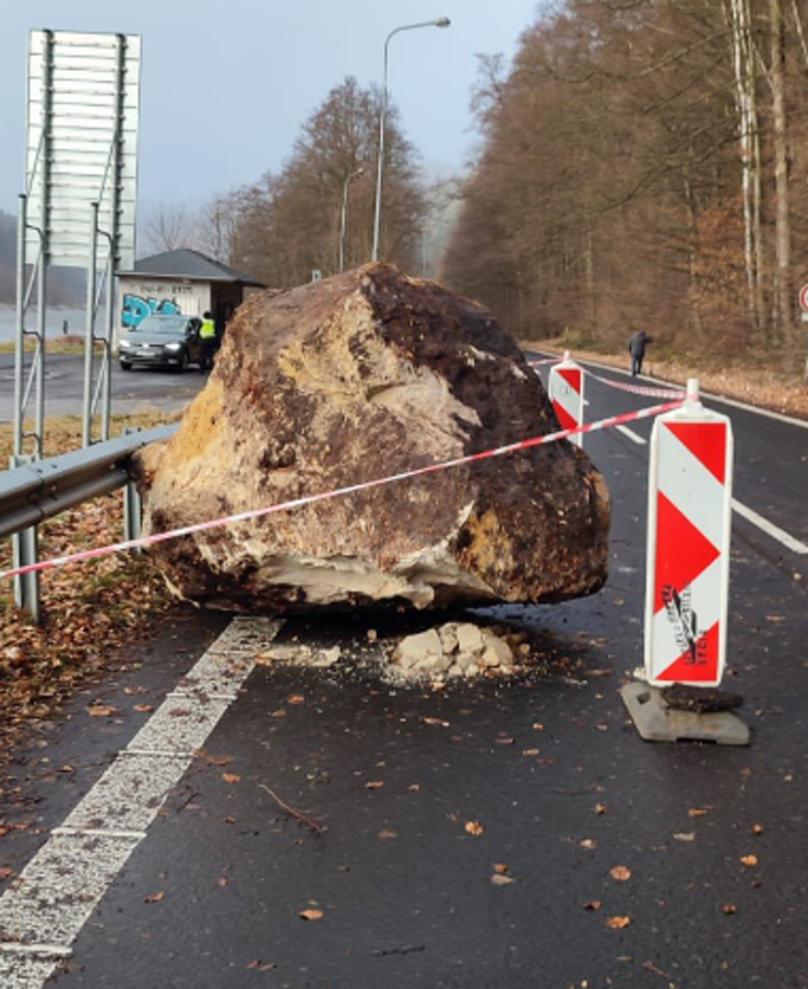 Balvan o hmotnosti asi patnáct tun prorazil bariéru , která ve svahu brání právě pádu kamenů a spadl na silnici. V lesním úseku mezi obcí Hřensko a státní hranicí se svalil na silnici pískovcový blok o velikosti osobního automobilu, po té, co prorazil zátěžový plot.