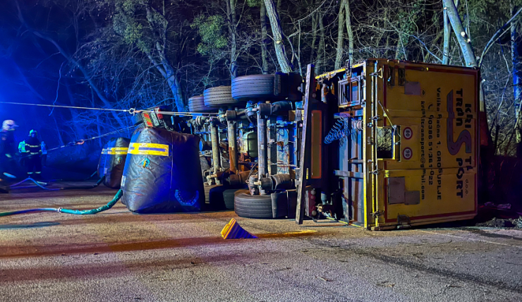 LUBINA – Tři hasičské jednotky se včera odpoledne zapojily do likvidace následků dopravní nehody kamionu, který se v kopřivnické části Lubina převrátil na bok.
