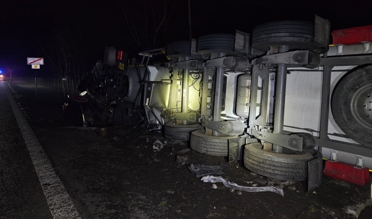 STRAKONICKO – U Střelských Hoštic na Strakonicku včera večer havarovala automobilová cisterna s hořlavým butanem, která skončila na boku.