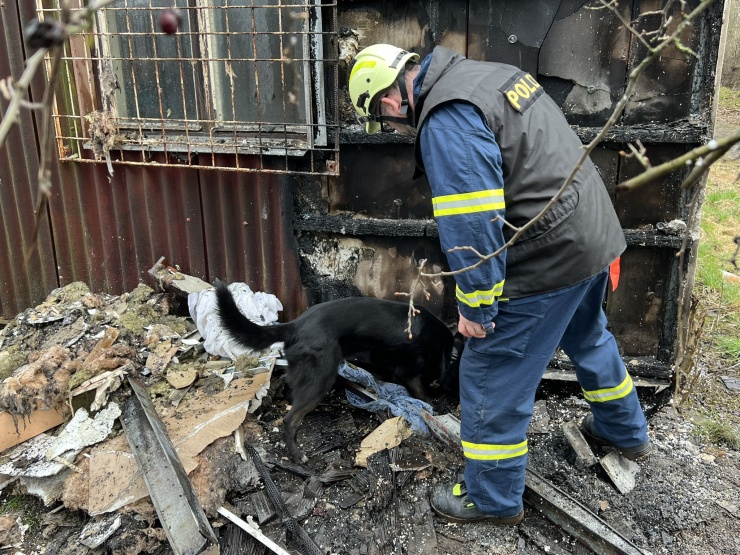 Na místě jsou kriminalisté, kteří společně s hasiči zjišťují možnou příčinu vzniku požáru. Pracujeme s několika vyšetřovacími verzemi. Na místo byl povolán i služební pes vycvičený na vyhledávání akcelerantů.