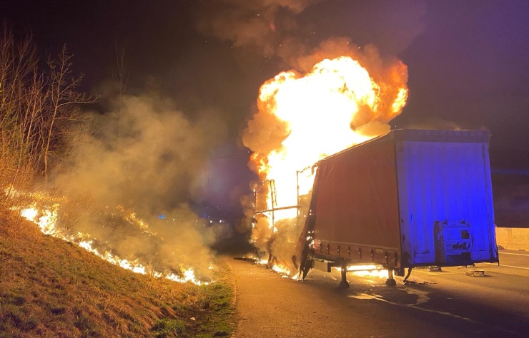STŘEDOČESKÝ KRAJ – Krátce před čtvrt na tři dnes ráno vyjely jednotky hasičů k požáru návěsu nákladního automobilu u Mirošovic na 23. km dálnice D1 ve směru na Prahu.