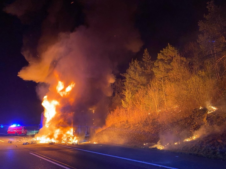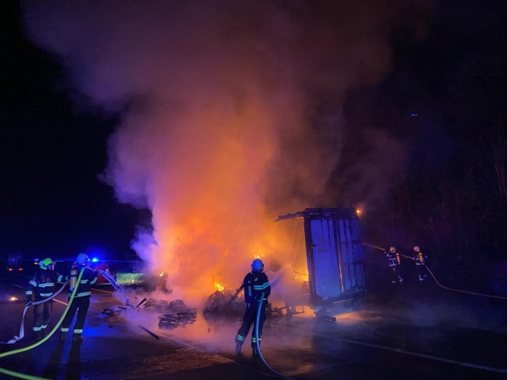 Příčinou požáru byla technická závada na kole návěsu. Škoda byla předběžně vyčíslena na tři miliony korun. Hasičům se rychle podařilo požár lokalizovat. Škoda byla předběžně vyčíslena na tři miliony, příčinou požáru byla technická závada na kole návěsu.