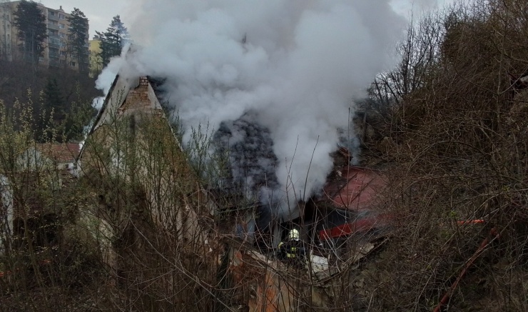 Hoří dům v ulici Zdislavina v Třebíči. Přivolaní hasiči na likvidaci požáru nasadili několik vodních proudů.