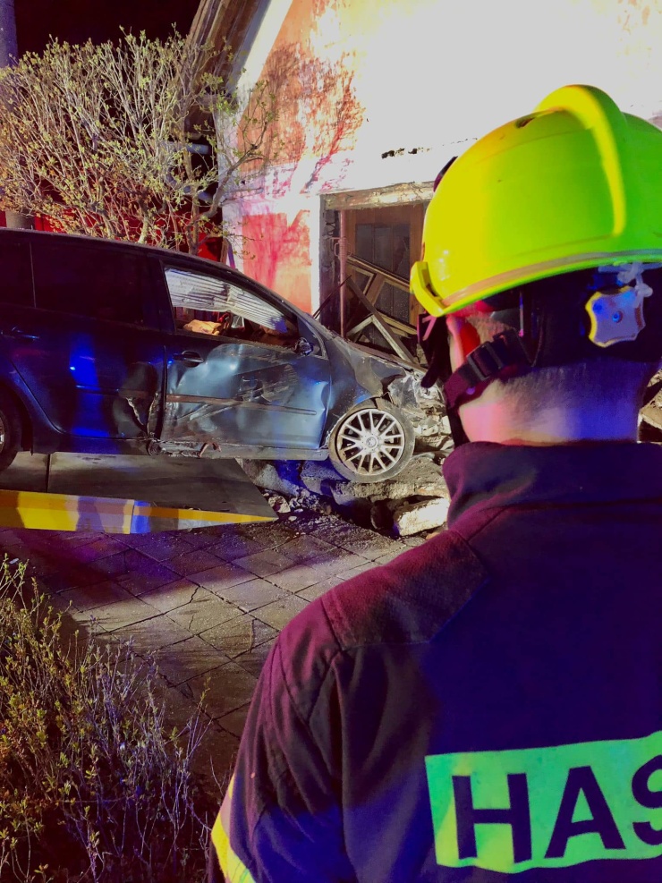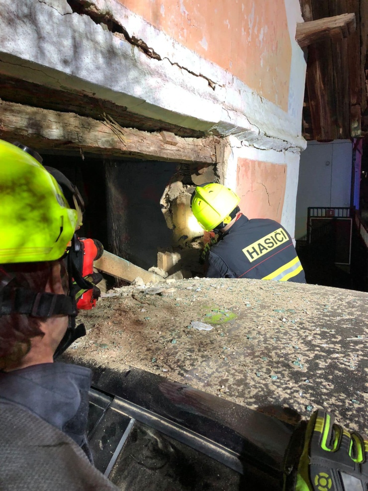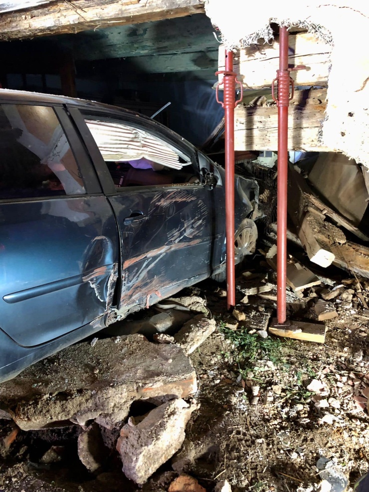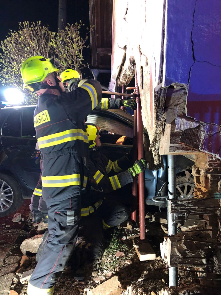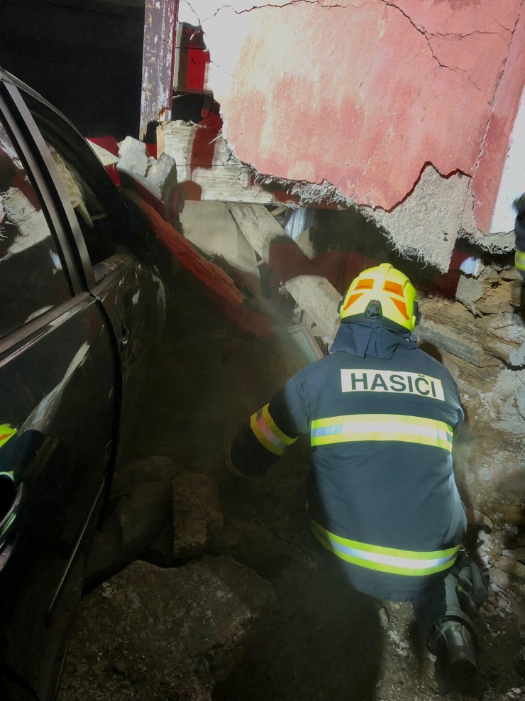 BOHARYNĚ – Náraz auta do starého neobydleného domu zaměstnal hasiče na několik hodin, štítovou zeď museli hasiči provizorně stabilizovat.