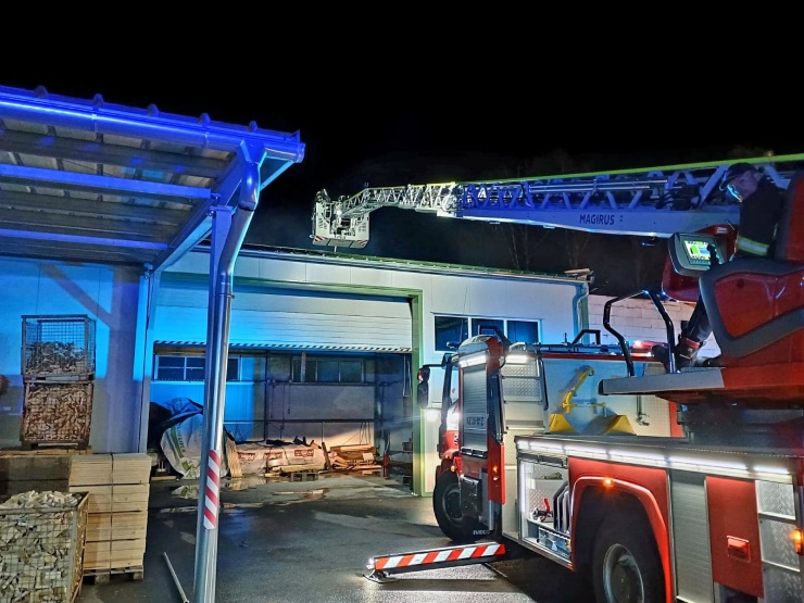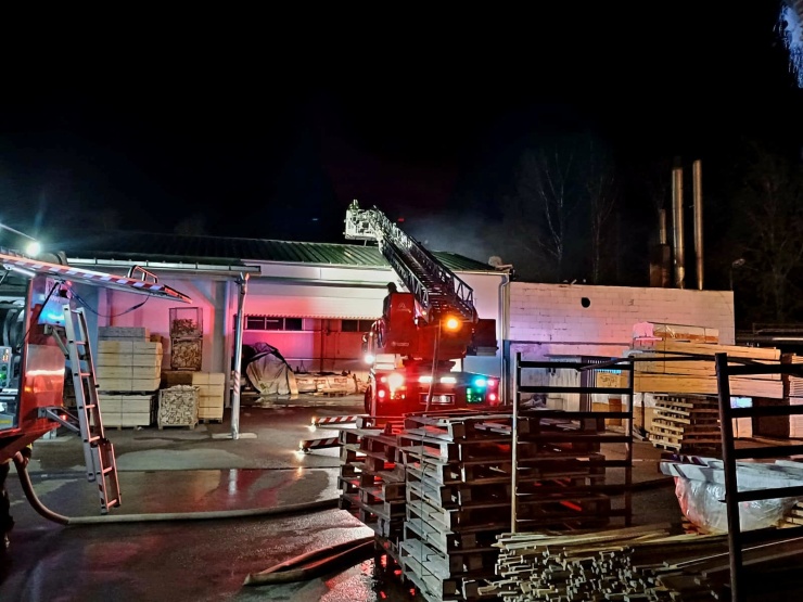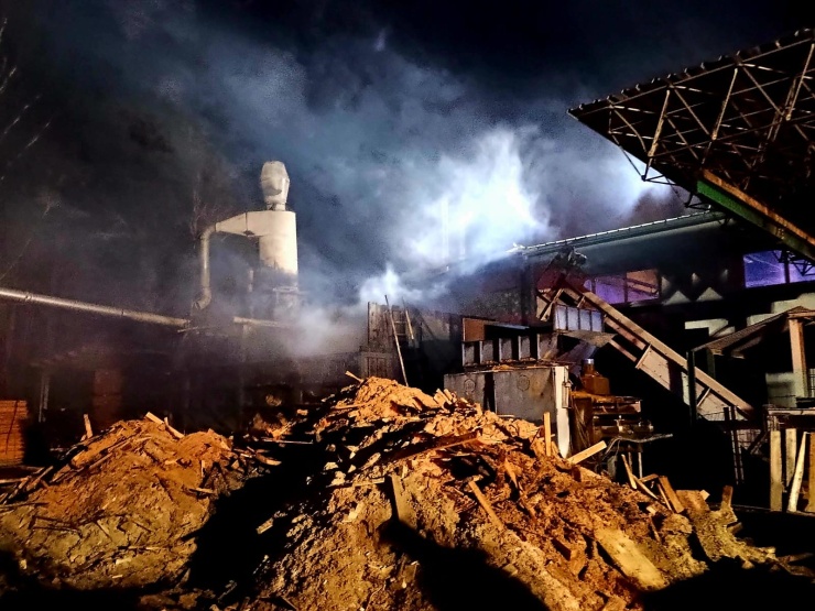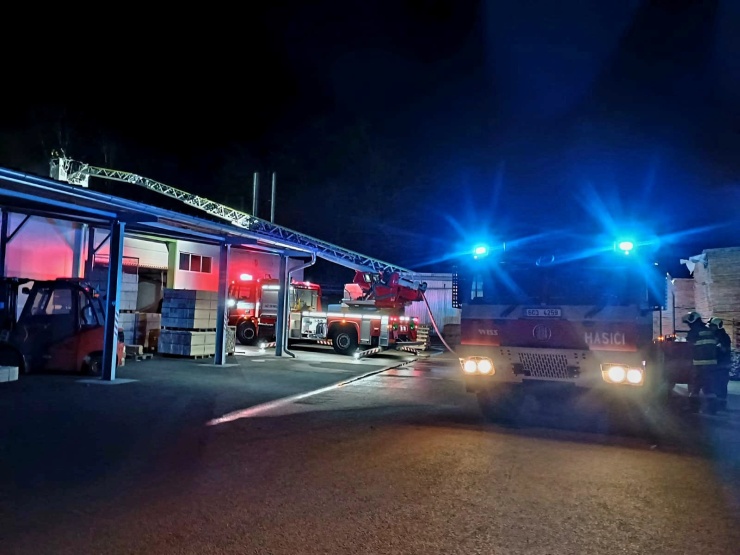 OBRAZEM: Noční požár kotelny a zásobníků na dřevní hmotu v Dolním Ostrovci na Písecku zaměstnal čtyři hasičské jednotky