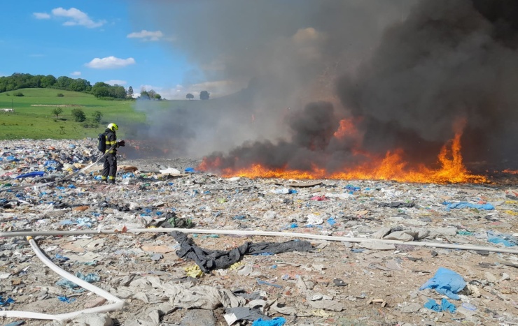 AKTUÁLNĚ: V Malšovicích u Děčína hoří skládka komunálního odpadu! Požár likviduje šest hasičských jednotek