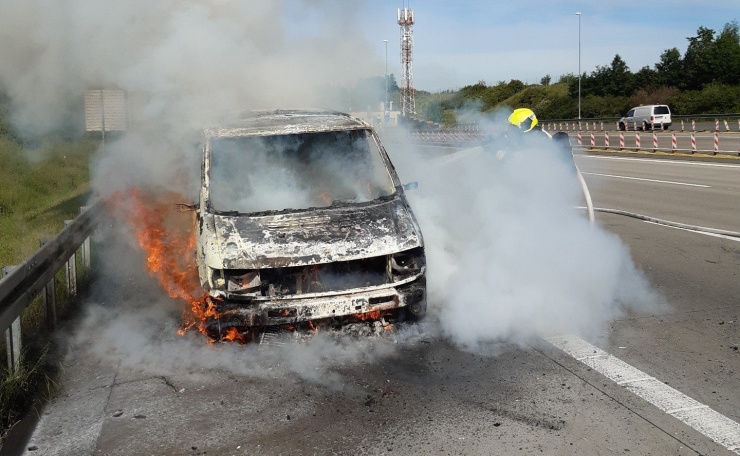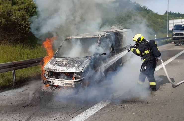 Plameny mají hasiči pod kontrolou! V době příjezdu hasičské jednotky na místo byla dodávka zasažena plameny v plném rozsahu. Požár se obešel bez zranění. Okolnosti požáru vyšetřují policisté a vyšetřovatel hasičů.