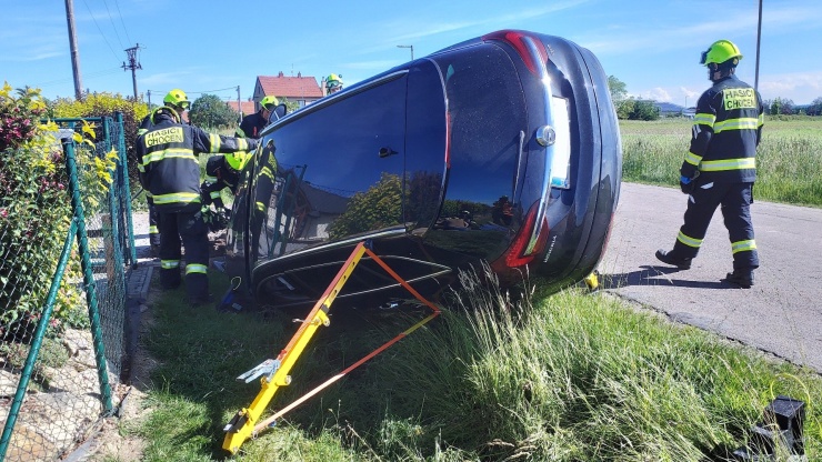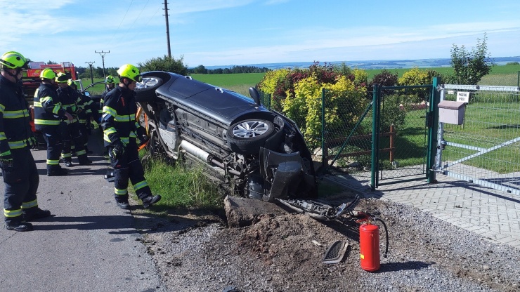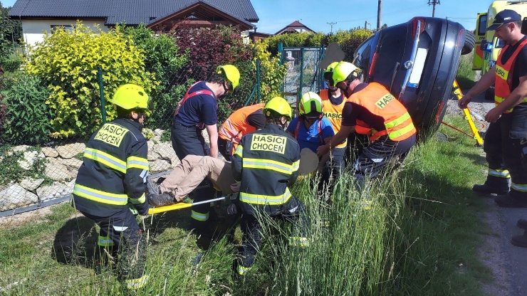 SVATÝ JIŘÍ – K nehodě osobního vozu, které skončilo na boku, vyráželi včera dopoledne hasiči ze stanice Vysoké Mýto a dobrovolní hasiči z Chocně do obce Svatý Jiří.