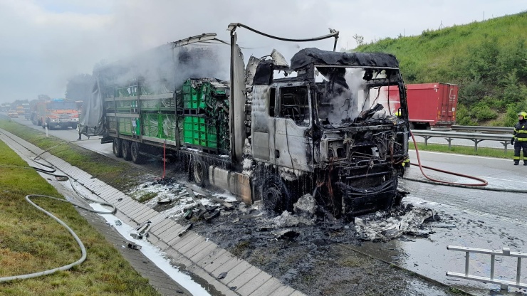 BENEŠOVSKO – Na dálnici D1 ve směru Praha – Brno na 40 kilometru dálnice na Benešovsku uzavřel dopravu požár kamionu!