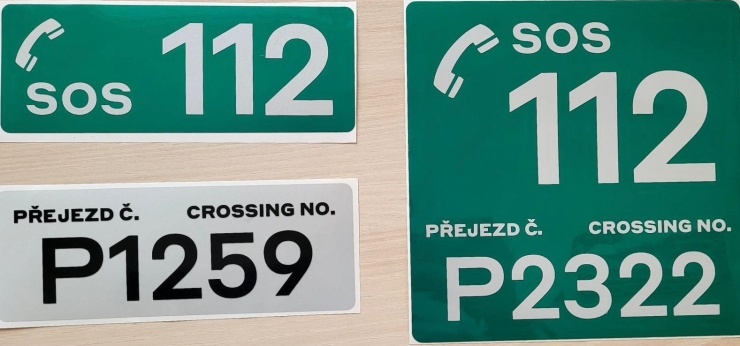 Identifikační štítky s číslem přejezdu se vylepují na zadní stranu signalizačních světel nebo výstražných křížů. Správa železnic se toto značení rozhodla nově lépe zvýraznit. V rámci pilotního projektu se na 26 přejezdech ve třech krajích použijí nové polepy, které jsou lépe viditelné díky reflexnímu povrchu, tedy i během nočních hodin. Na jejich výsledné podobě se podílelo grafické studio.