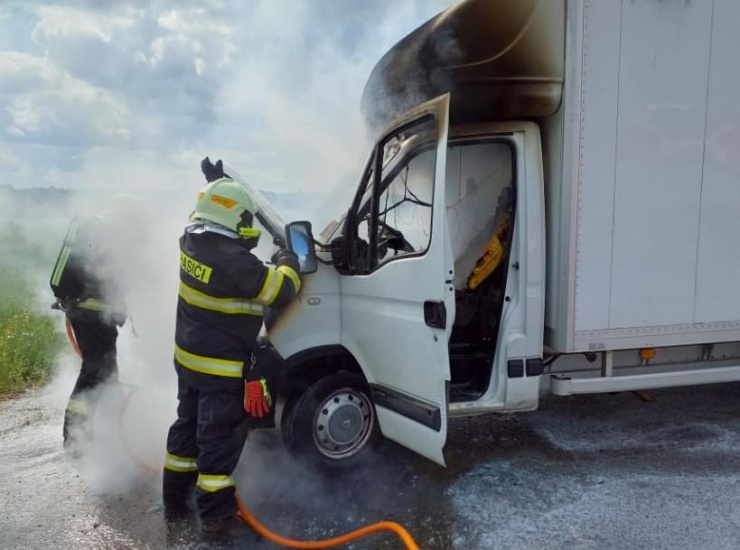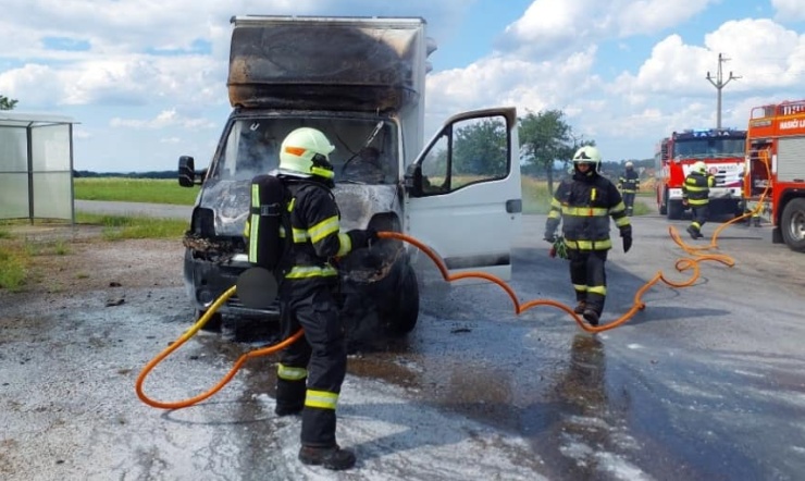 Následně vystoupil a z motorové části vozu již vycházely plameny. Naštěstí řidič neutrpěl zranění. Na místě byly velmi rychle jednotky a požár uhasily. Hasiči museli zjistit, co se nachází uvnitř dodávky, proto násilně vstoupili do nástavby, kde byly umístěny tři propanbutanové lahve, které naštěstí nebyly v nebezpečí. Jednalo se o speciální vůz s nástavbou, kde na střeše byly tři fotovoltaické panely.