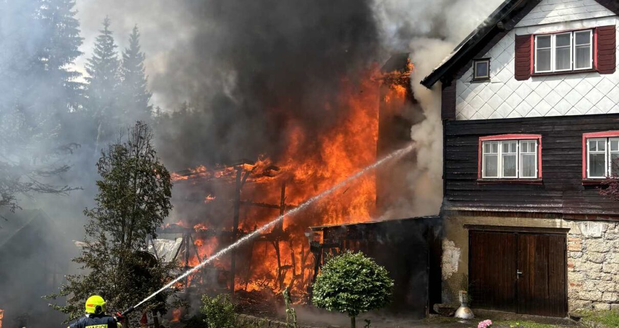 JABLONECKO – Hasičské jednotky z 2. stupně požárního poplachu právě teď zasahují v Horním Kořenově na Jablonecku u požáru domu.