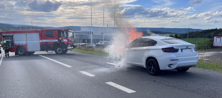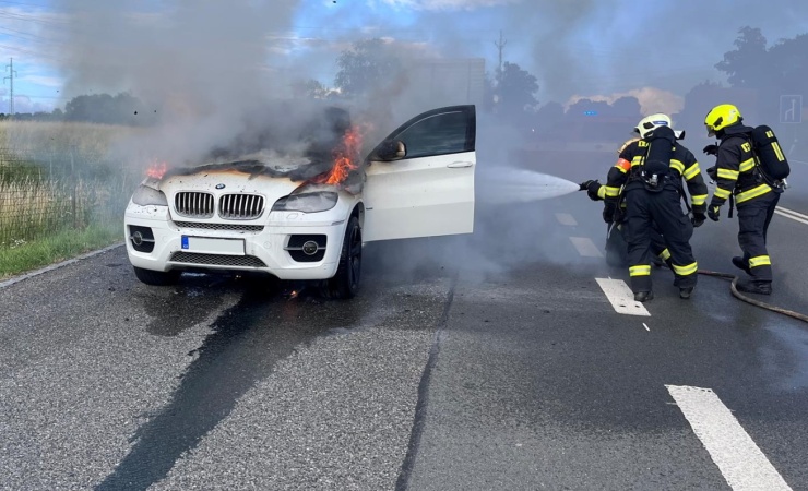 PŘÍBRAMSKO – K požáru osobního automobilu na vjezdu do Příbrami ve směru od dálnice D4 vyslal operační důstojník profesionální jednotku z centrální hasičské stanice. Hasiči byli na místě za šest minut od ohlášení události a v krátké chvíli v dýchací technice požár lokalizovali vysokotlakým proudem.