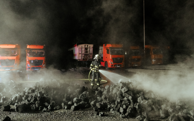 ZBYSLAVICE – Tři jednotky hasičů zasahovaly v pátek v noci u požáru koksu na návěsu kamionu ve Zbyslavicích.