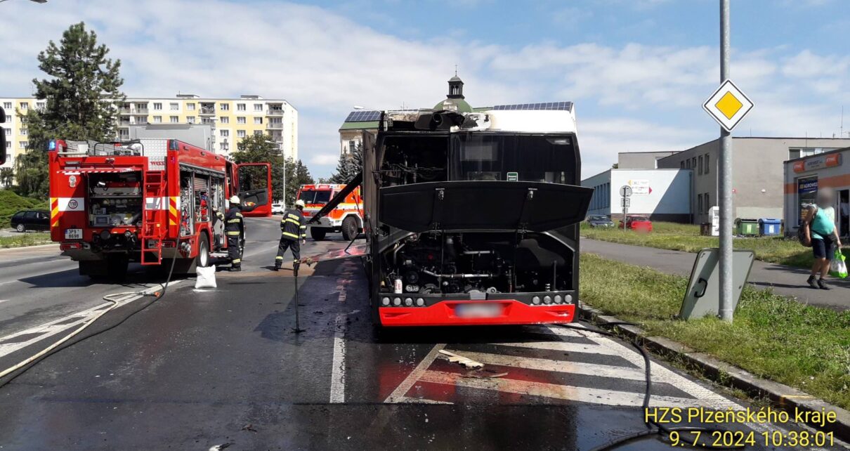 PLZEŇ – V úterý v deset hodin dopoledne došlo k požáru linkového autobusu dopravního podniku města Plzeň v ulici Křimická ve Skvrňanech. Jednalo se o plamenné hoření v motorové části, kdy v době vzniku požáru cestovalo v autobusu 20 lidí, kteří před příjezdem hasičů tento autobus opustili a nedošlo tak k žádnému zranění.