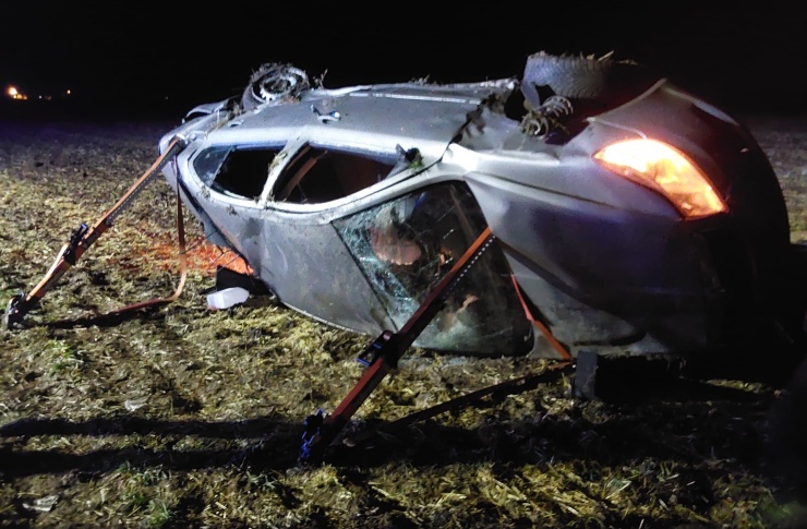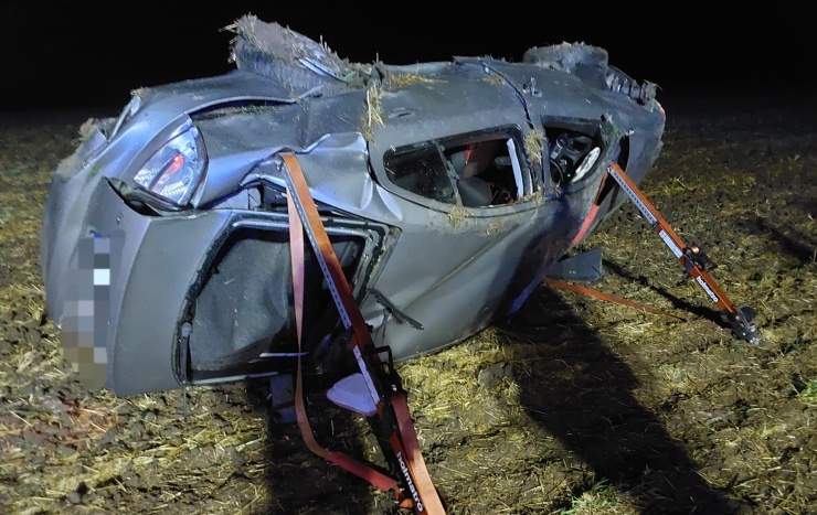 PŘEROVSKO – Složky Integrovaného záchranného systému zasahovaly u obce Stará Ves na Přerovsku, kde skončilo po nehodě havarované auto zaklíněné na boku.