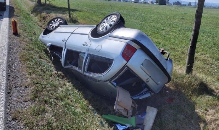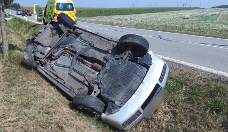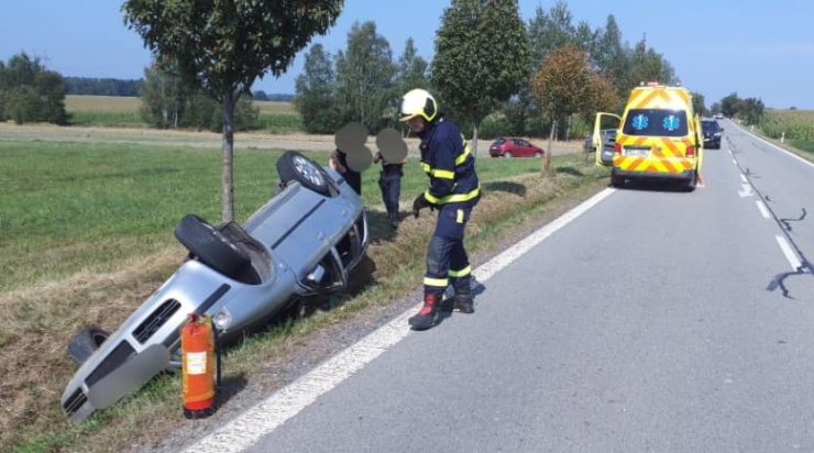 K té první došlo v Holetíně, kde řidička skončila s vozem v příkopu a na střeše. Hasiči zajistili vůz proti vzniku požáru i úniku provozních kapalin. Řidička byla při příjezdu jednotky mimo vozidlo a jelikož utrpěla zranění, skončila v péči zdravotníků.