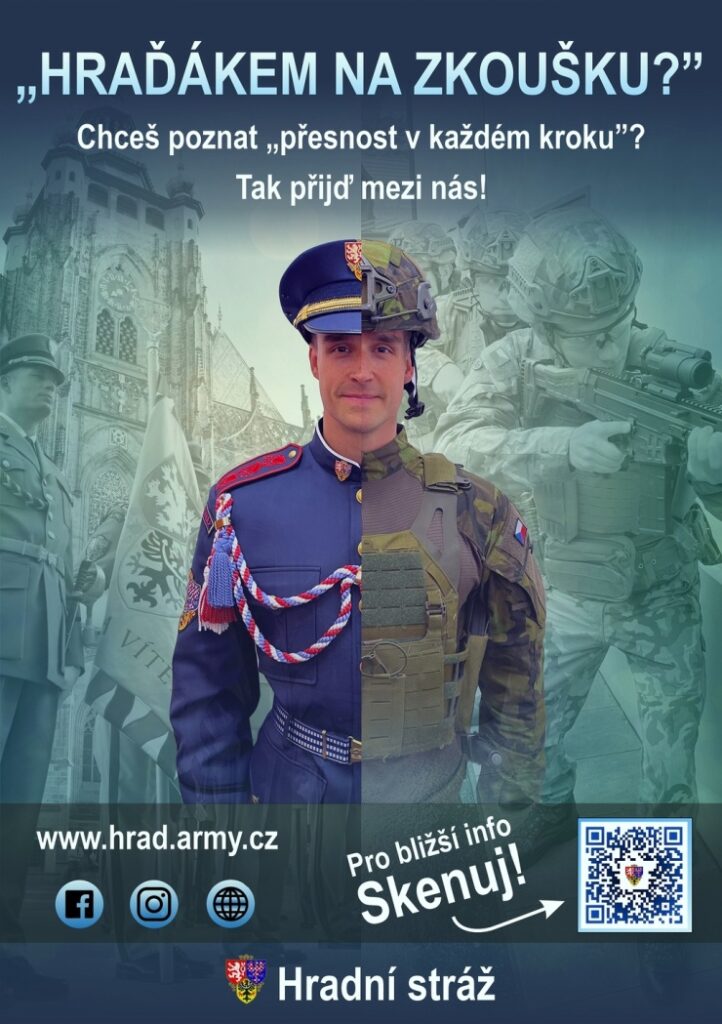 ČESKO – Hradní stráž pořádá náborovou akci Hraďákem na zkoušku. Zájemci se letos 29. října budou moci přímo na Pražském hradě seznámit s tím, jak vypadá vojenská služba v sídle prezidenta a leccos si vyzkoušet na vlastní kůži.