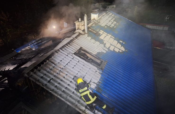 Ranní požár rodinného domu na samotě u obce Cvrčovice na Kladensku napáchal škodu za devět milionů korun