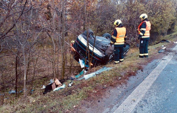 Havarované vozidlo budou přivolaní hasiči vyprošťovat z příkopu. Okolnosti nehody vyšetřují dopravní policisté.
