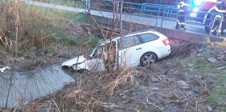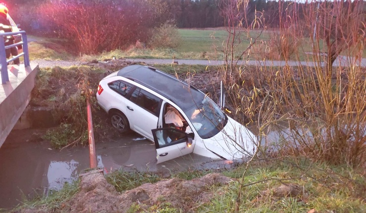 Jednu osobu přivolaní hasiči z auta, potopeného přední části ve vodě, vyprostili a předali do péče zdravotníkům. Na místo následně vyjel automobilový jeřáb, který bude vozidlo vytahovat. Okolnosti nehody vyšetřují policisté. Projíždějte s opatrností.