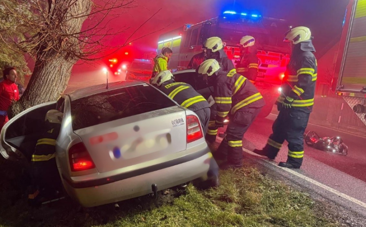 Náraz osobního vozidla do stromu byl dnes v 16:48 hodin důvodem pro výjezd dvou družstev hasičů z CHS Jičín a jednotky sboru dobrovolných hasičů z Kopidlna.
