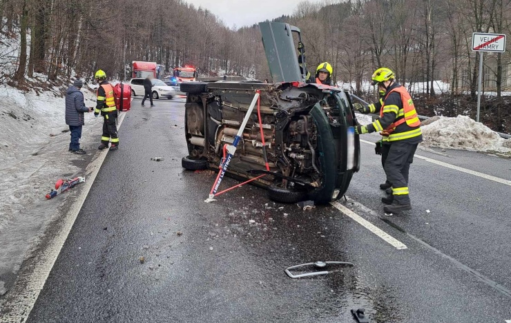 VELKÉ HAMRY – Složky Integrovaného záchranného systému ČR zasahovaly dnes ráno u dopravní nehody ve Velkých Hamrech, kde osobní automobil skončil převrácený na boku. K události vyjeli tanvaldští profesionální hasiči a dobrovolní kolegové z Desné.