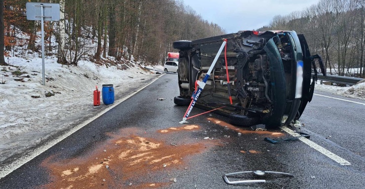 Na místě dopravní nehody hasiči zasypali sorbentem uniklé provozní kapaliny a podařilo se jim bezpečně přetočit havarované vozidlo zpět na kola. Okolnosti dopravní nehody vyšetřují policisté.