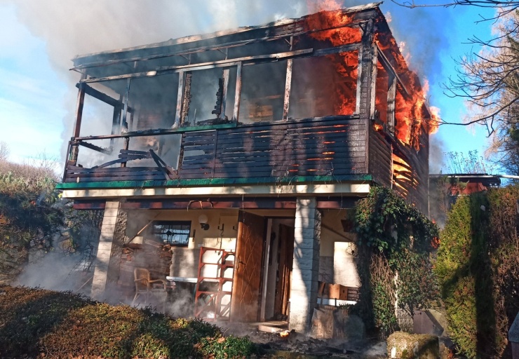 Krajské operační a informační středisko hasičů přijalo oznámení o požáru dnes v deset hodin dopoledne. Na místo ihned vyjeli profesionální hasiči a jednotka města Zlína. V době jejich příjezdu bylo horní patro objektu v plamenech a zraněné osoby byly již mimo chatu. Hasiči pomáhali s ošetřením obou popálených osob a s jejich následným transportem.