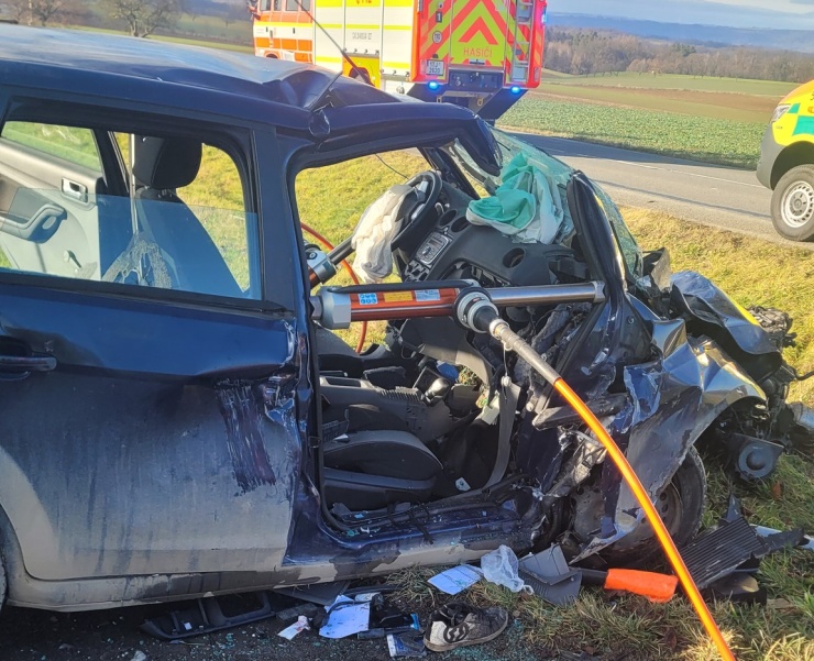 NOVOJIČÍNSKO – U nehody osobního automobilu, která se stala včera krátce před polednem v katastru Starého Jičína na Novojičínsku, museli hasiči vyprostit zaklíněného spolujezdce za použití hydraulického vyprošťovacího nářadí. Do nemocnice ho transportoval vrtulník záchranné služby. Řidička byla odvezena do nemocnice sanitním vozidlem.