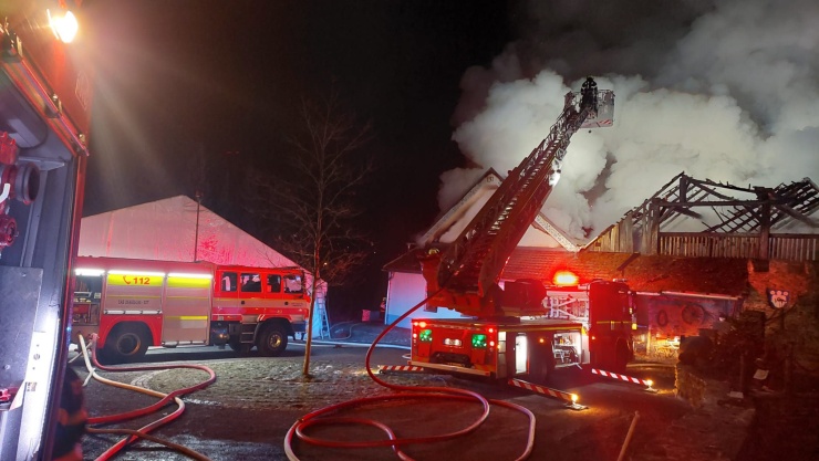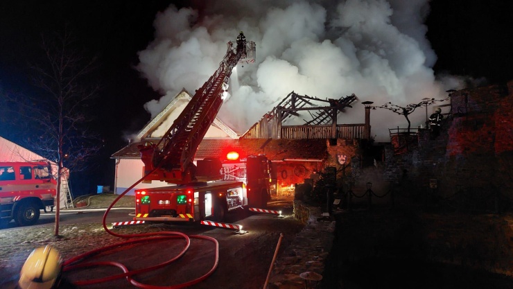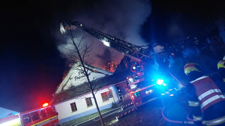 LAZNÍKY – Rozsáhlý požár hospody v obci Lazníky na Přerovsku aktuálně zaměstnává hasiče. Na místě zasahuje 6 hasičských jednotek, včetně výškové techniky.