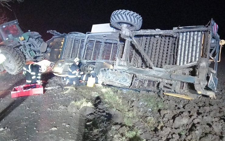JIČÍNSKO – U nehody traktoru s návěsem na silnici III/3263 mezi Bříšťany a Pšánkami na Jičínsku zasahovali hasiči z HS Hořice. Na místě byla i CHS Hradec Králové s vyprošťovacím automobilem.