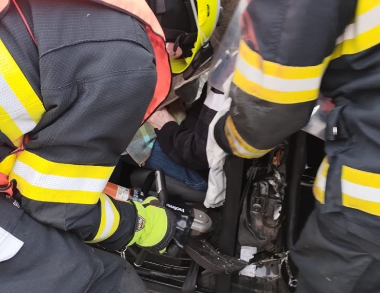 Přivolaní hasiči museli zraněného řidiče osobního vozu vyprostit pomocí hydraulického vyprošťovacího zařízení. Po vyproštění byl předán do péče záchranářům. Havarované vozidlo po nárazu skončilo mimo vozovku.