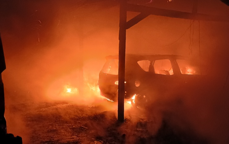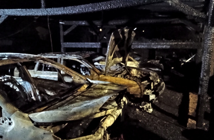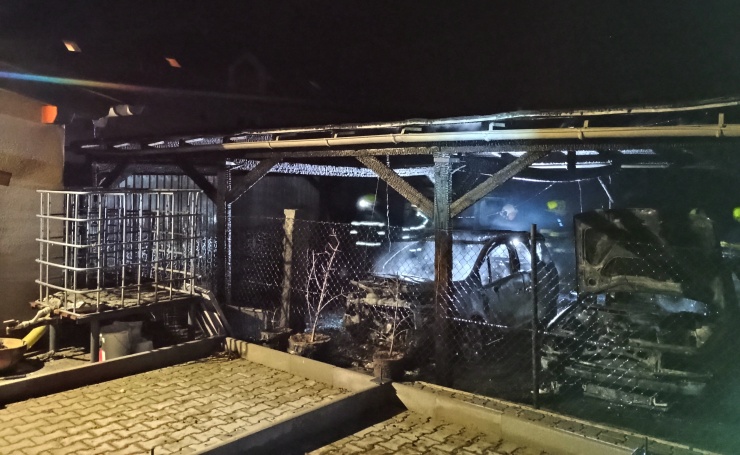 Požár byl rychle uhašen třemi C proudy, přesto stačil zcela zničit 4 auta a 2 přístřešky. Předběžná škoda byla stanovena na 1,5 milionu korun.