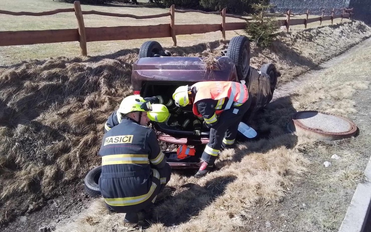 CÍNOVEC – Po střetu dvou osobních aut na Cínovci na Teplicku skončilo jedno z havarovaných vozidel v příkopu na střeše. U nehody zasahovaly složky Integrovaného záchranného systému ČR dnes krátce po 13. hodině.