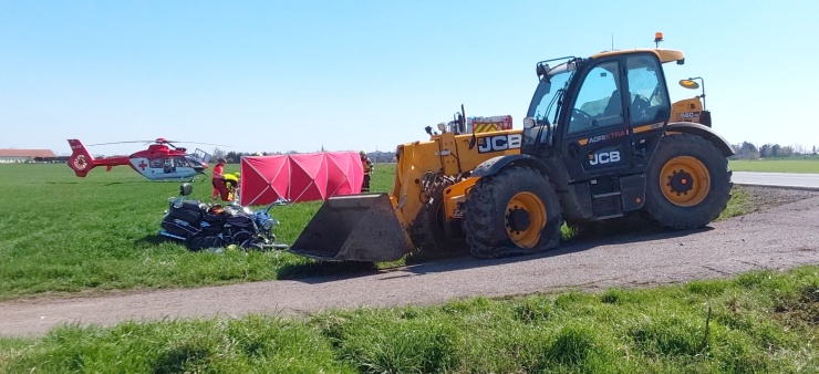 PROSTĚJOVSKO – Vážné následky má včerejší střet motorkáře s traktorbagrem na Prostějovsku, při kterém motorkář utrpěl devastující zranění dolní končetiny a ve vážném stavu byl letecky transportován do nemocnice.
