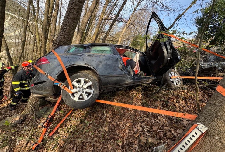 havarované vozidlo bylo nejprve nutné zastabilizovat, protože skončilo ve svahu a hrozil jeho další pohyb. K tomu byl povolán také vyprošťovací automobil z benešovské centrální hasičské stanice. Jednu osobu museli hasiči z vozu vyprostit a následně ji předali do péče zdravotnické záchranné službě.