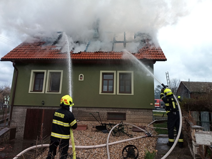 ZLÍNSKO – Požár dnes dopoledne zničil střechu a půdní prostory rodinného domu v obci Vysoké Pole na Zlínsku. Na pomoc byly vyslány čtyři jednotky hasičů.
