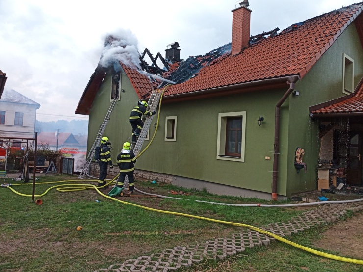 Požár střechy rodinného domu na Zlínsku zaměstnal čtyři hasičské jednotky