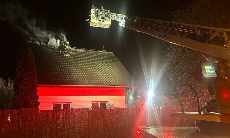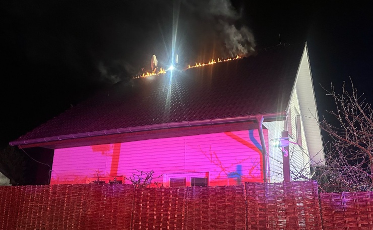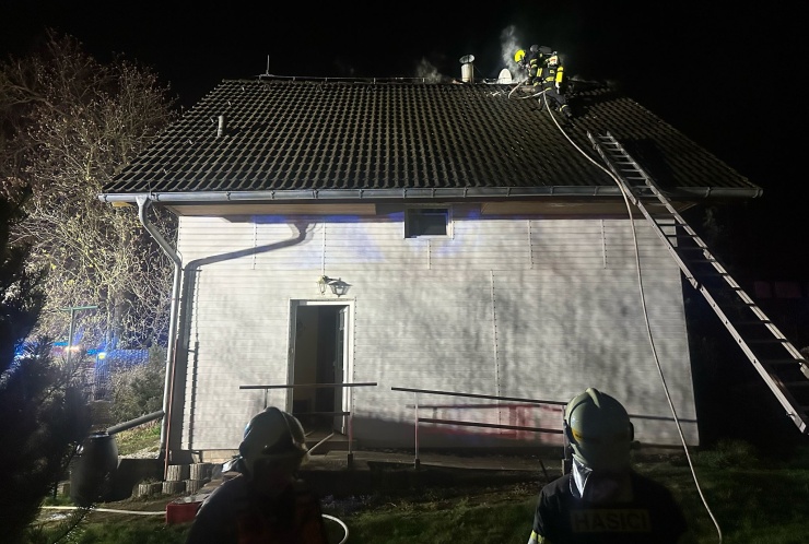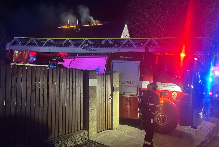 Noční požár střechy rodinného domu v Ohrobci zaměstnal hasiče
