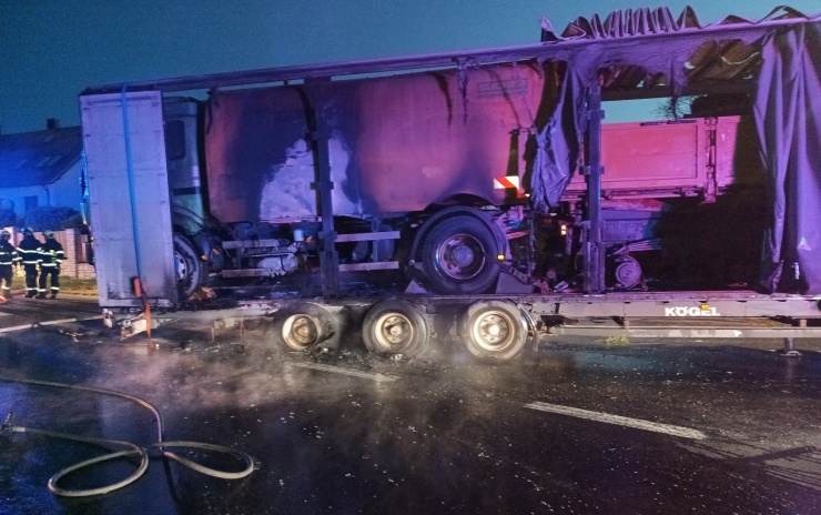PRCHATICKO – Jednotky hasičů zasahovaly dnes po čtvrté hodině ranní v Mičovicích na Prachaticku u požáru kamionu a dvou vozidel na návěsu.