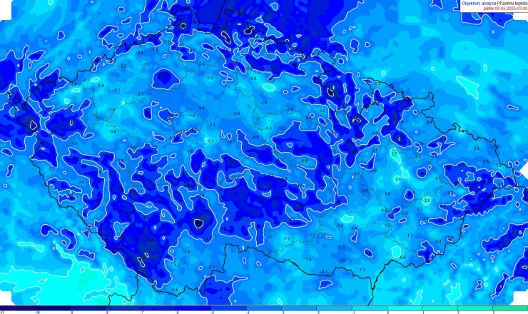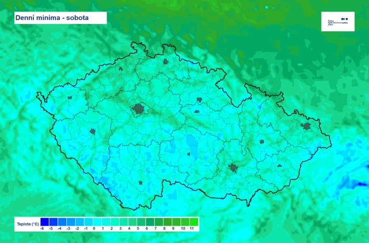 Také v dalších dnech se budou teploty ve 2 metrech nad zemí pohybovat v nočních a ranních hodinách jen těsně nad bodem mrazu, ale přízemní teploty budou stále často klesat k hodnotám až kolem -3 °C.