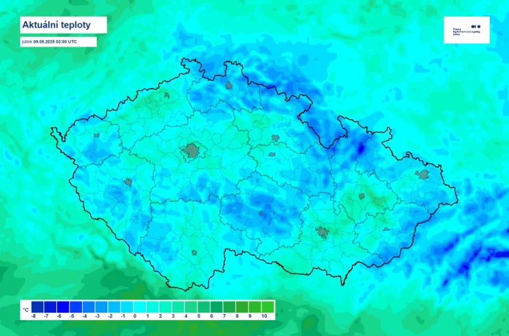 ČESKO – V nejbližších dnech bude podle meteorologů pokračovat chladnější ráz počasí. Teploty zůstanou minimálně do poloviny příštího týdne pod dlouhodobým průměrem. V noci na zítřek mohou teploty v údolích výjimečně spadnout i slabě pod nulu.