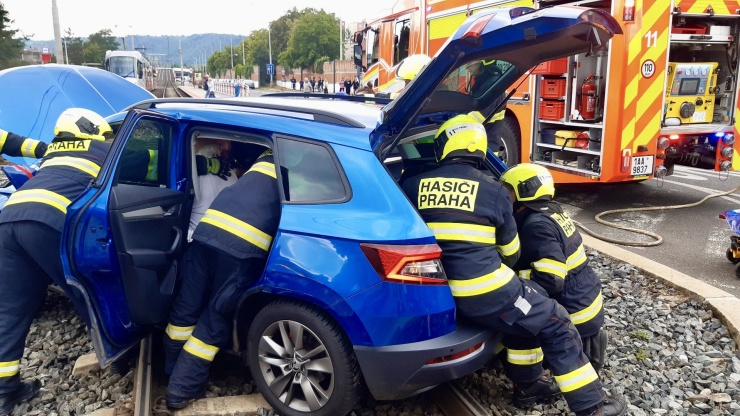 PRAHA – Do ulice Generála Šišky vyjeli profesionální hasiči ze stanice Modřany a hasiči Dopravního podniku hl.m. Prahy k dopravní nehodě osobního automobilu a tramvaje.