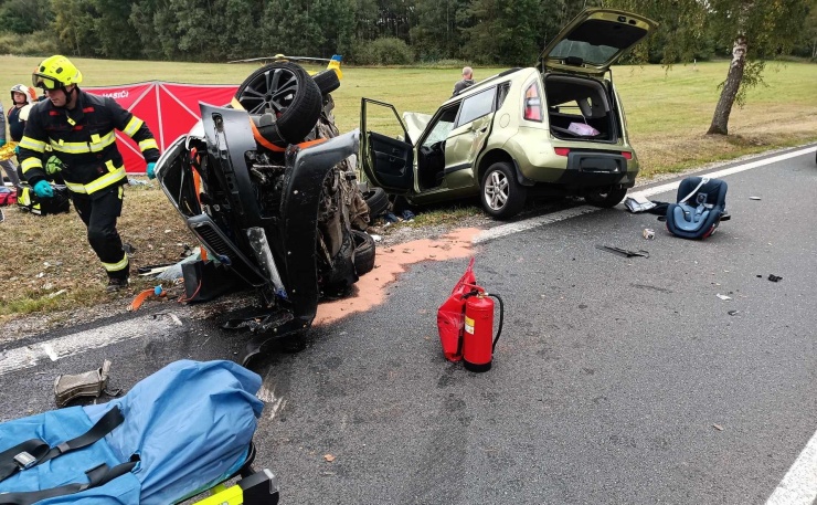 Podle policistů čelní střet nepřežila spolujezdkyně jednoho z vozidel. Dalších pět lidí včetně dvou dětí se zranilo.