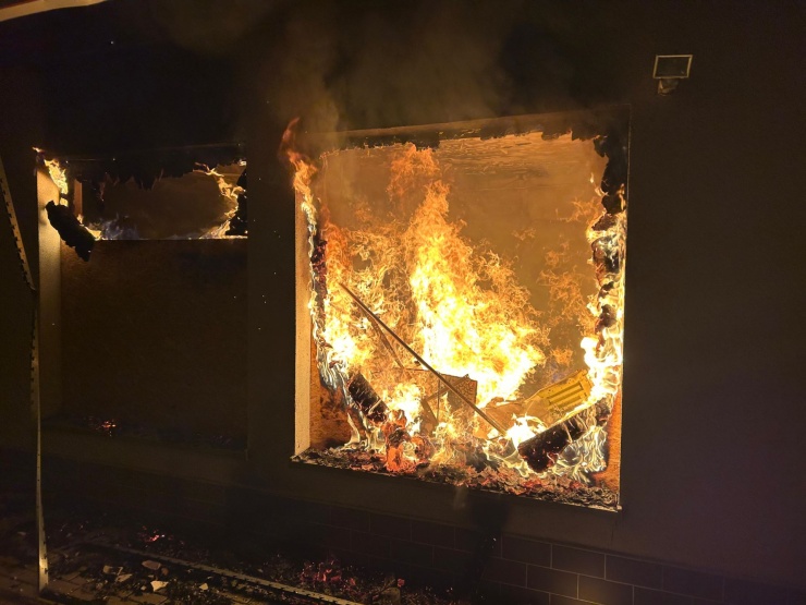 Operační středisko hasičů vyhlásilo první stupeň požárního poplachu a k události vyjely čtyři jednotky požární ochrany. Hasební zásah trval do 22:03 hodin, kdy byla likvidace požáru. Hasičům komplikovaly práci umělé překážky v budově. Uvnitř se naštěstí nikdo nenacházel.