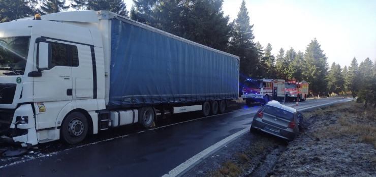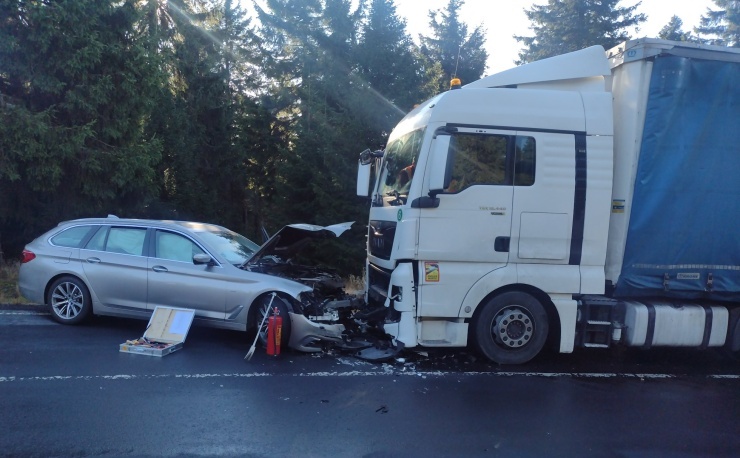 BOŽÍ DAR – Složky Integrovaného záchranného systému ČR zasahují na silnici č. 219 u autobusové zastávky Boží Dar – Klínovec, rozcestí, kde došlo k dopravní nehodě 2 osobních a 1 nákladního automobilu.