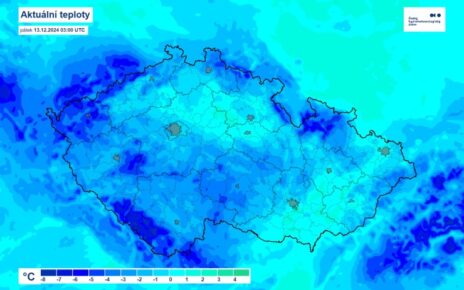 ČESKO – Dnešní ráno je nadprůměrně teplé, na východě Čech a na Moravě se teploty pohybují i kolem 7 °C, na většině území je mezi 2 až 6 °C. Chladněji je na západě a jihozápadě Čech. Nejnižší teploty jsme zaznamenali už večer, kdy ještě byla zejména na horách lokálně zmenšená oblačnost, na stanici Kvilda-Perla klesla teplota na – 8,1 °C.