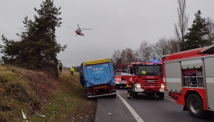 KARLOVARSKO – Složky Integrovaného záchranného systému ČR včetně vrtulníku leteckých záchranářů zasahovaly včera odpoledne u dopravní nehody kamionu a osobního auta na silnici I/6 u odbočky na Olšova Vrata na Karlovarsku.